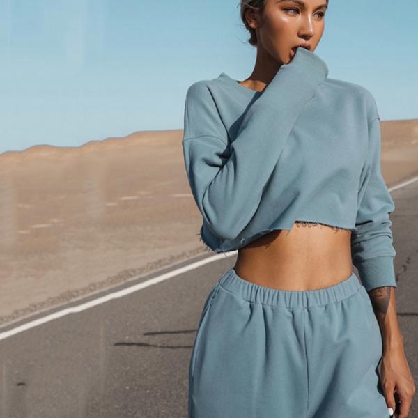 Fashion Long Sleeve Round Neck Cotton Polyester Crop Top Images |